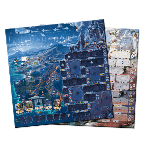 Twisted Paths is the final major addition to the world of Arnak. Its highlight is a new double-sided map, bigger than the one in the base game, that features two new research tracks, each with unique mechanisms and components. On the map, you can choose to explore its daytime side and scale the white stone of the Owl Temple. It uses unique new temple tiles that, if combined together, can become extra idol slots, and a third research token, a lantern, that brings even stronger research rewards. You can also brave the night and journey through the dark caverns of the Spider Temple. This side uses a new resource, dark tablets, used to invoke mysterious altars and place artifacts directly onto the research track to be used when ascending the track. But beware—using the dark tablets can give you strong rewards, but also cost you points should you become too ambitious! In addition to the two new maps, the expansion also contains new guardians, sites, and assistants. It also brings some solo content—Rival tiles for the new maps, as well as Purple Rival tiles and Rival Objectives, two mini expansions we’ve previously released online as print-and-play.