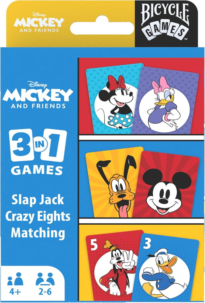 DISNEY MICKEY & FRIENDS FUN: Play three classic kids card games featuring beloved Disney characters including Mickey Mouse, Donald Duck, Goofy, and more! 3 DISNEY GAMES IN 1 SET: Includes timeless card games Matching, Crazy Eights, and Slap-Jack brought to life with favorite Disney characters. EDUCATIONAL & ENGAGING: Designed for preschoolers ages 4+, this fun and educational set helps kids develop memory, fine motor skills, critical thinking, and social communication through class gameplay.