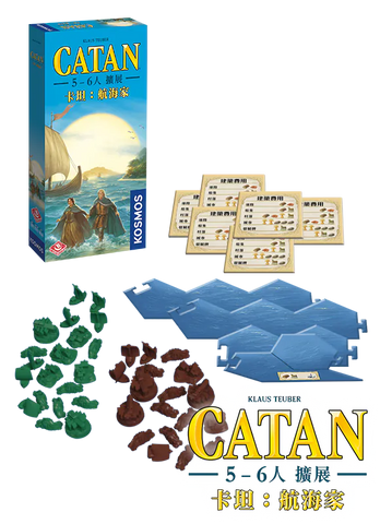 這是卡坦:航海家的5-6人擴展,是為了讓玩家可以玩5至6人同玩卡坦:航海家時使用。本擴展不能單獨遊玩,需要準備以下遊戲同時遊玩:卡坦:基礎版 + 卡坦:基礎版5-6人擴展 +卡坦:航海家